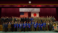 前日ほど強くはないものの、午前中は弱い雨が続いたため、開会式に引き続き集合写真を屋内で撮ることになりました。また、気温は11℃と肌寒く、良いコンディションとは言い難い状況でしたが、参加者は好きなゴルフを楽しみました。組み合わせを先輩期と後輩期を半々に混ぜて組んでおり、カートではゴルフの話から在職時の思い出話等の話が弾み、参加者はみんな楽しい時間を過ごせたようでした。
